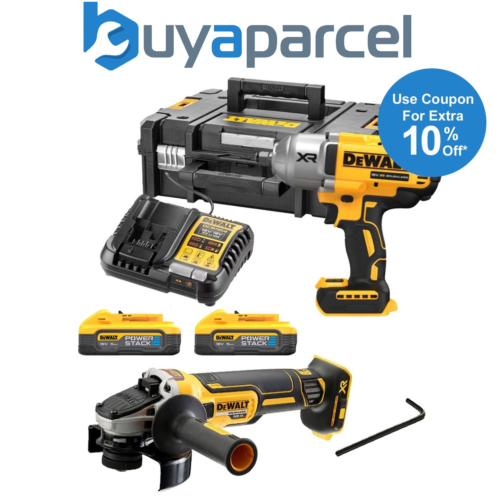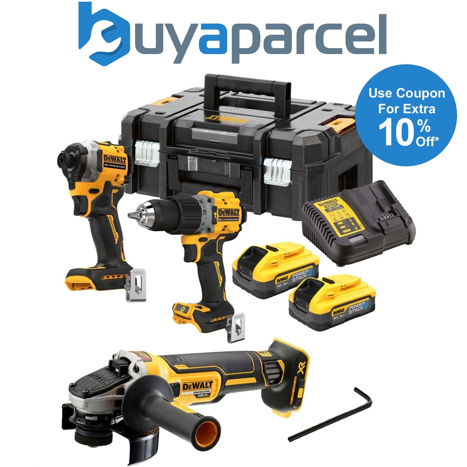 Dewalt DCK2050H2T 18v XR Brushless Powerstack Combi Hammer + Impact + Grinder