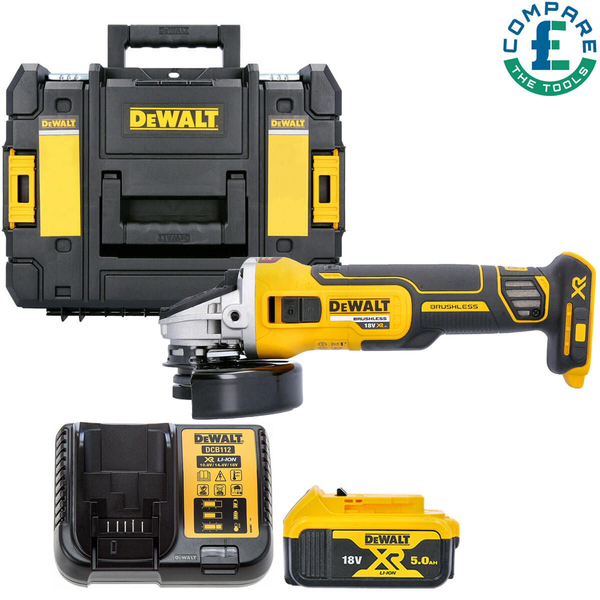 DeWalt DCG405N 18V Brushless 125mm Angle Grinder with 1 x 5.0Ah Battery & Charger