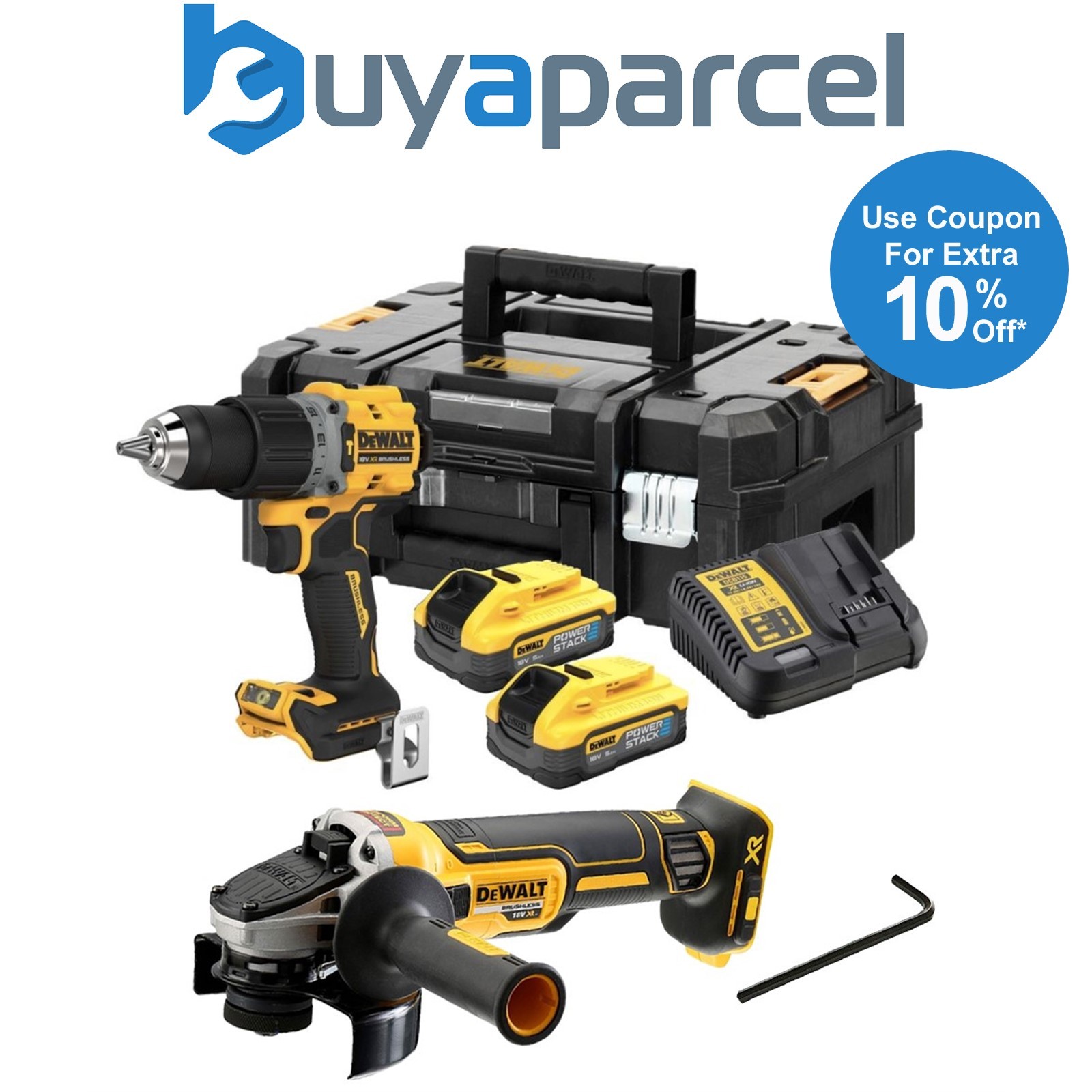 Dewalt DCD805H2T 18v XR Brushless Powerstack Combi Hammer Drill 2 x5AH + Grinder