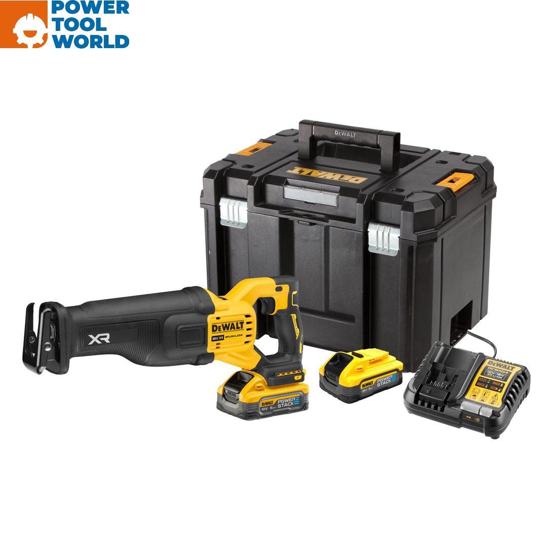 DEWALT DCS386H2T-GB 18V 2x5Ah BL Recip Saw Kit POWERSTACK Batteries
