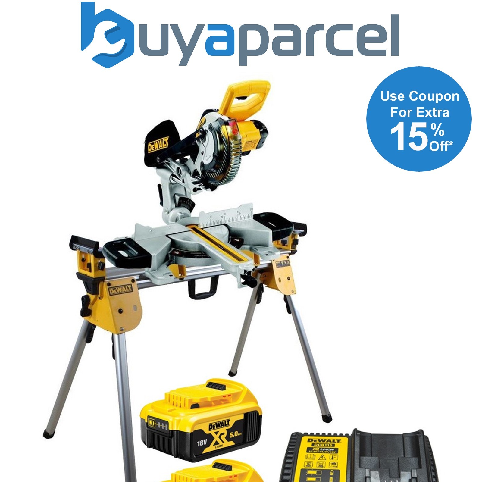 DeWalt DCS782N 18V Brushless Mitre Saw 2 x 5Ah Battery Charger & Universal Stand