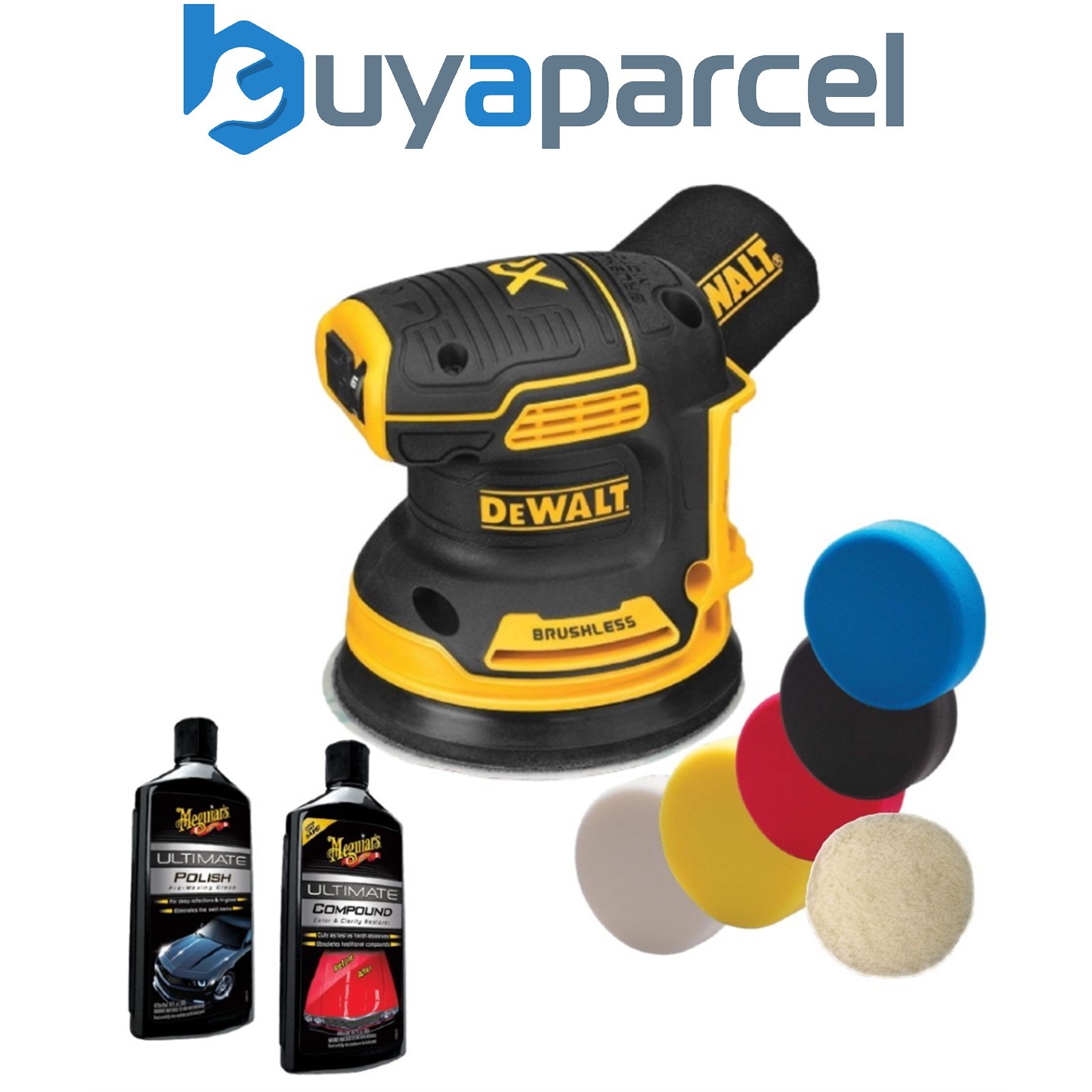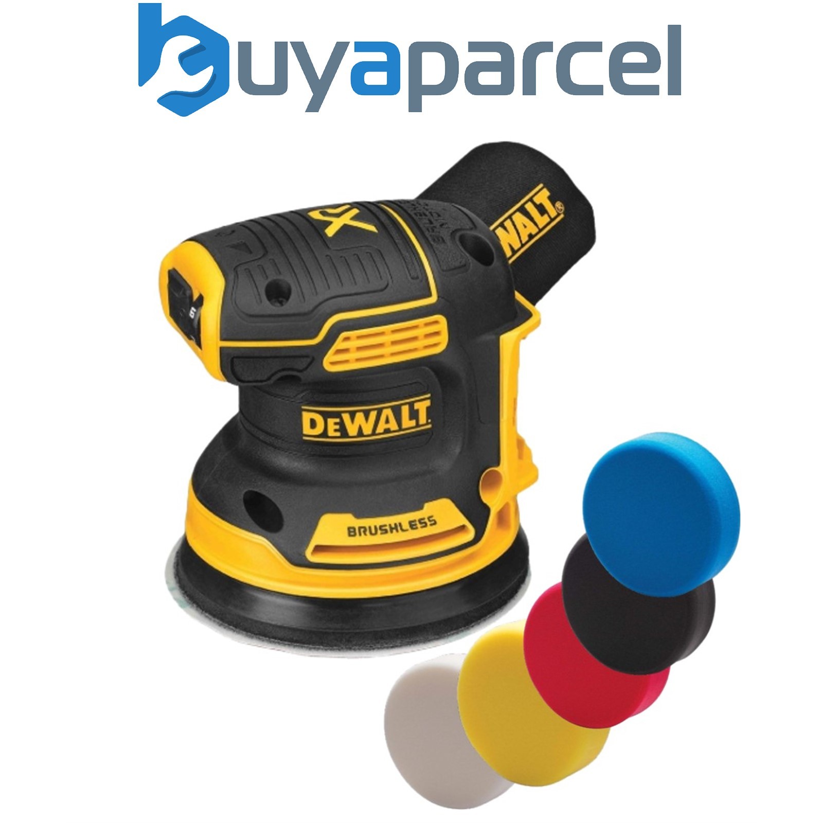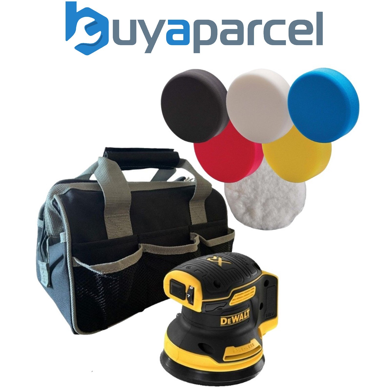 Dewalt DCW210N Cordless Brushless 18v XR Orbital Sander 125mm Polish Pads & Bag