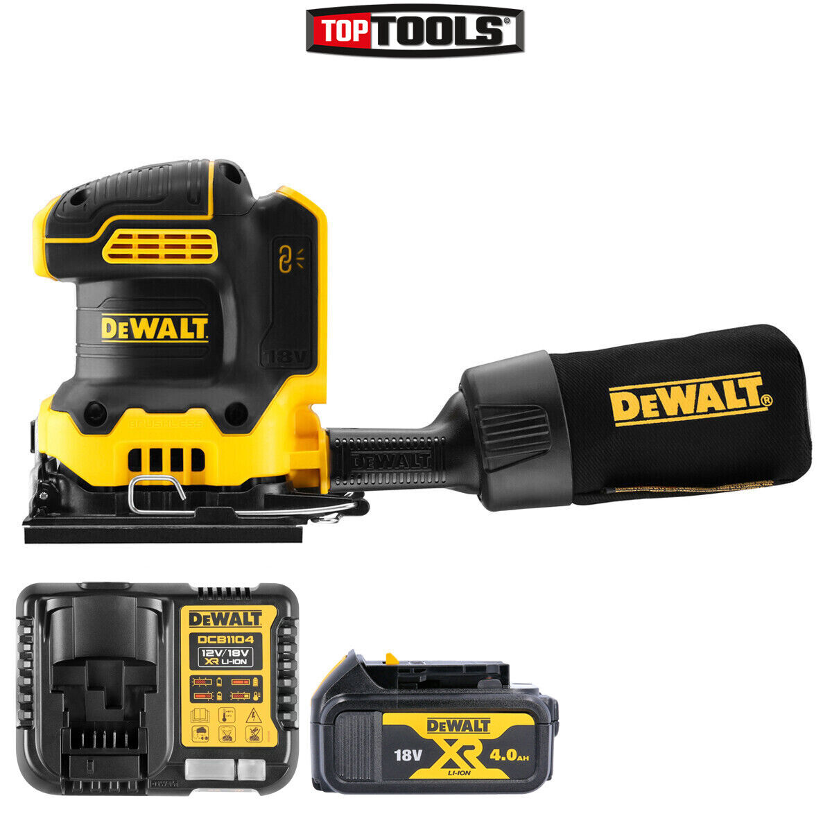 DeWalt DCW200 18V XR Brushless 1/4" Palm Sander With 1 x 4.0Ah Battery & Charger