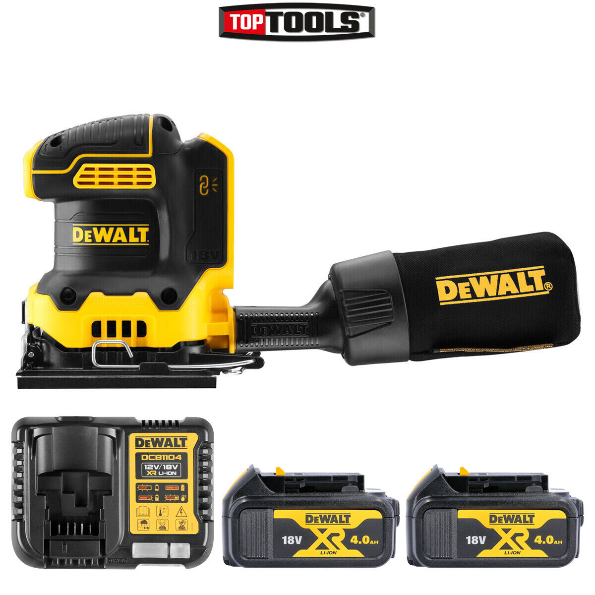 DeWalt DCW200 18V XR Brushless 1/4" Palm Sander + 2 x 4.0Ah Batteries & Charger