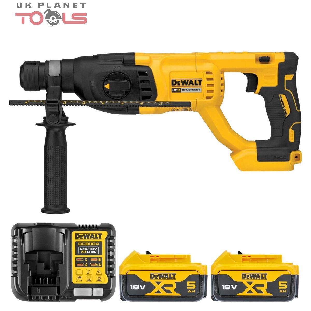 Dewalt 18V XR Brushless SDS Plus Hammer Drill +2x5ah Batteries Charger & Kit Box