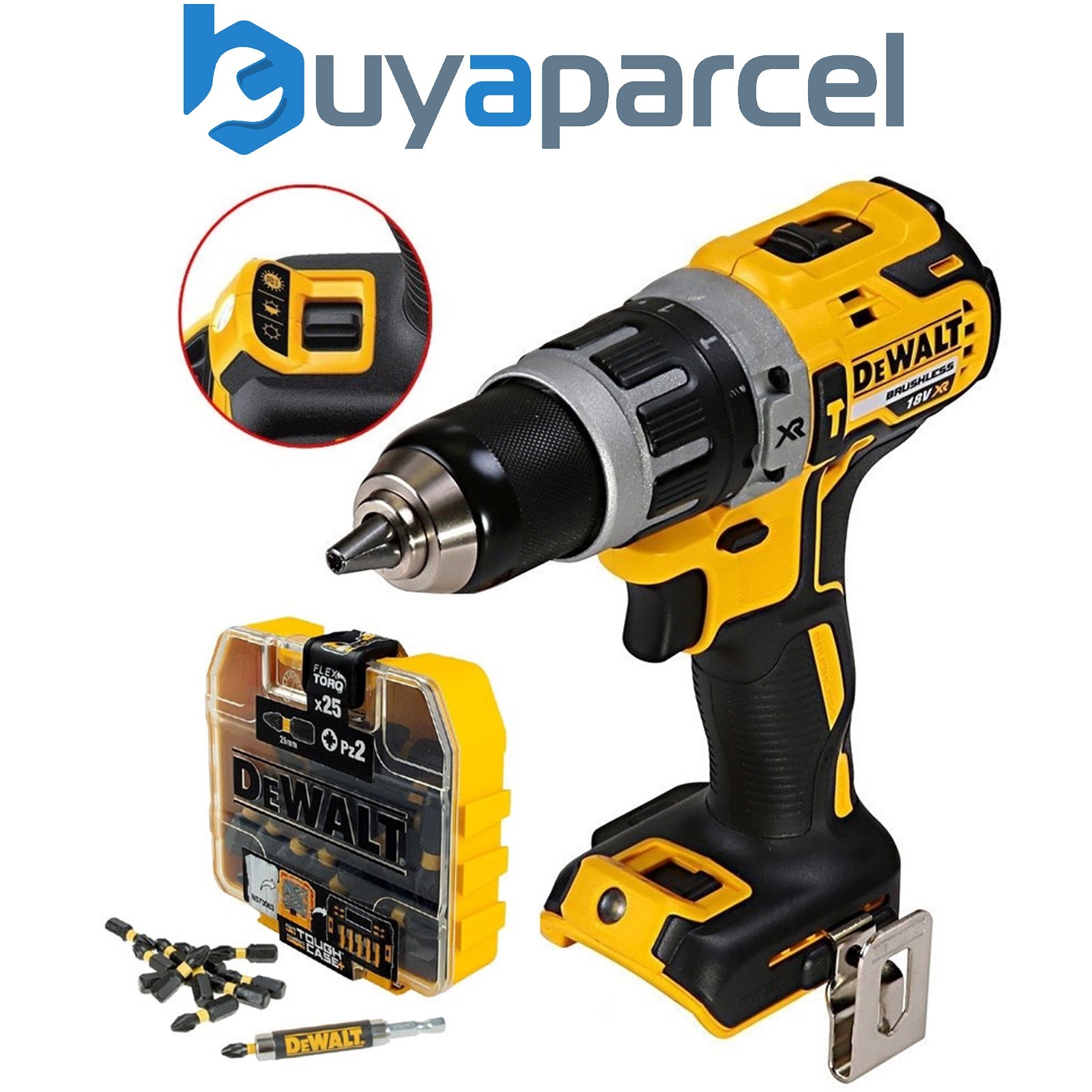 Dewalt DCD796N 18v XR Li-Ion Brushless Compact Combi Hammer Drill + 25PC Bit Set