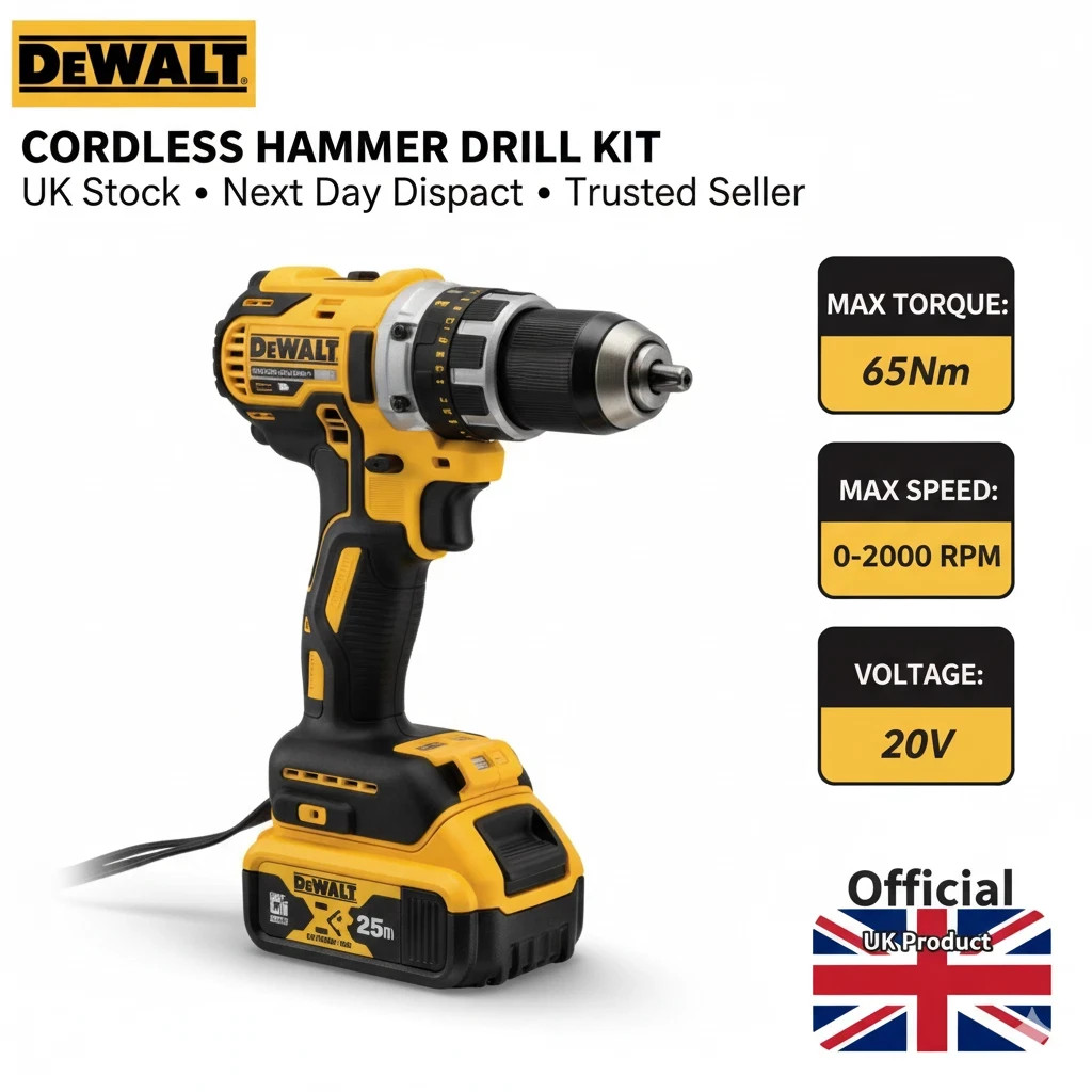 DeWALT 18V Brushless Hammer Drill Driver Kit DCD796D2-GB 2 X 2.0Ah Battery