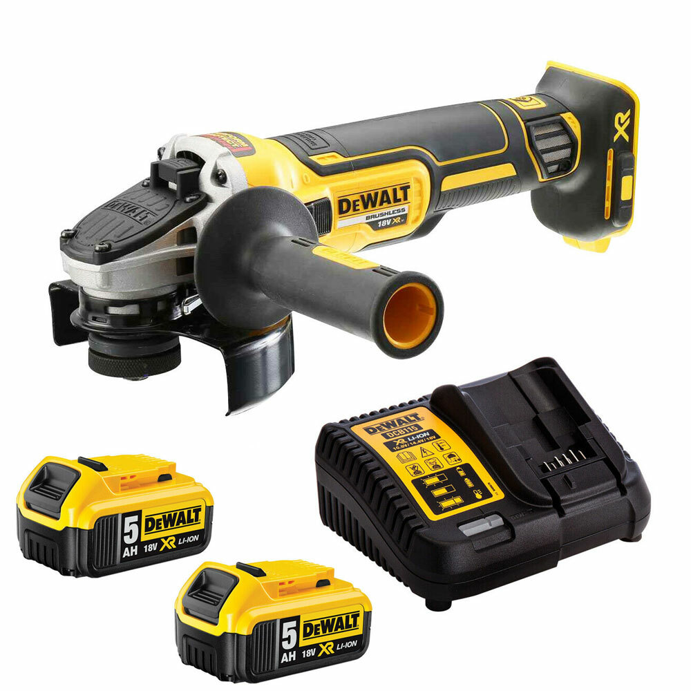DeWalt DCG406 18V XR Brushless 125mm Grinder + 2 x 5Ah Batteries & Charger