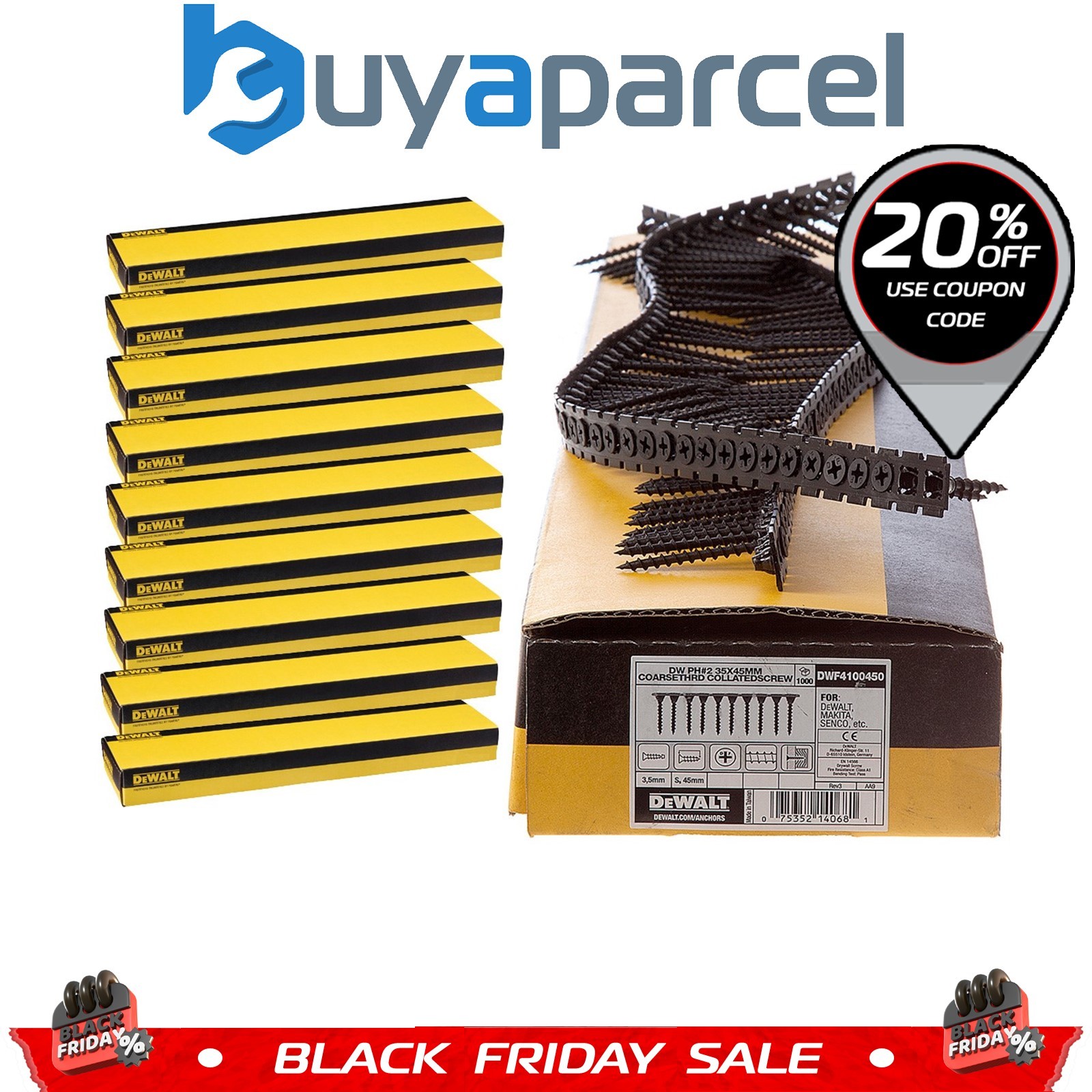 DeWalt Dewalt 45mm x 3.5mm Coarse Thread Collated Screws X 10000 Fit DCF620 Makita Fein