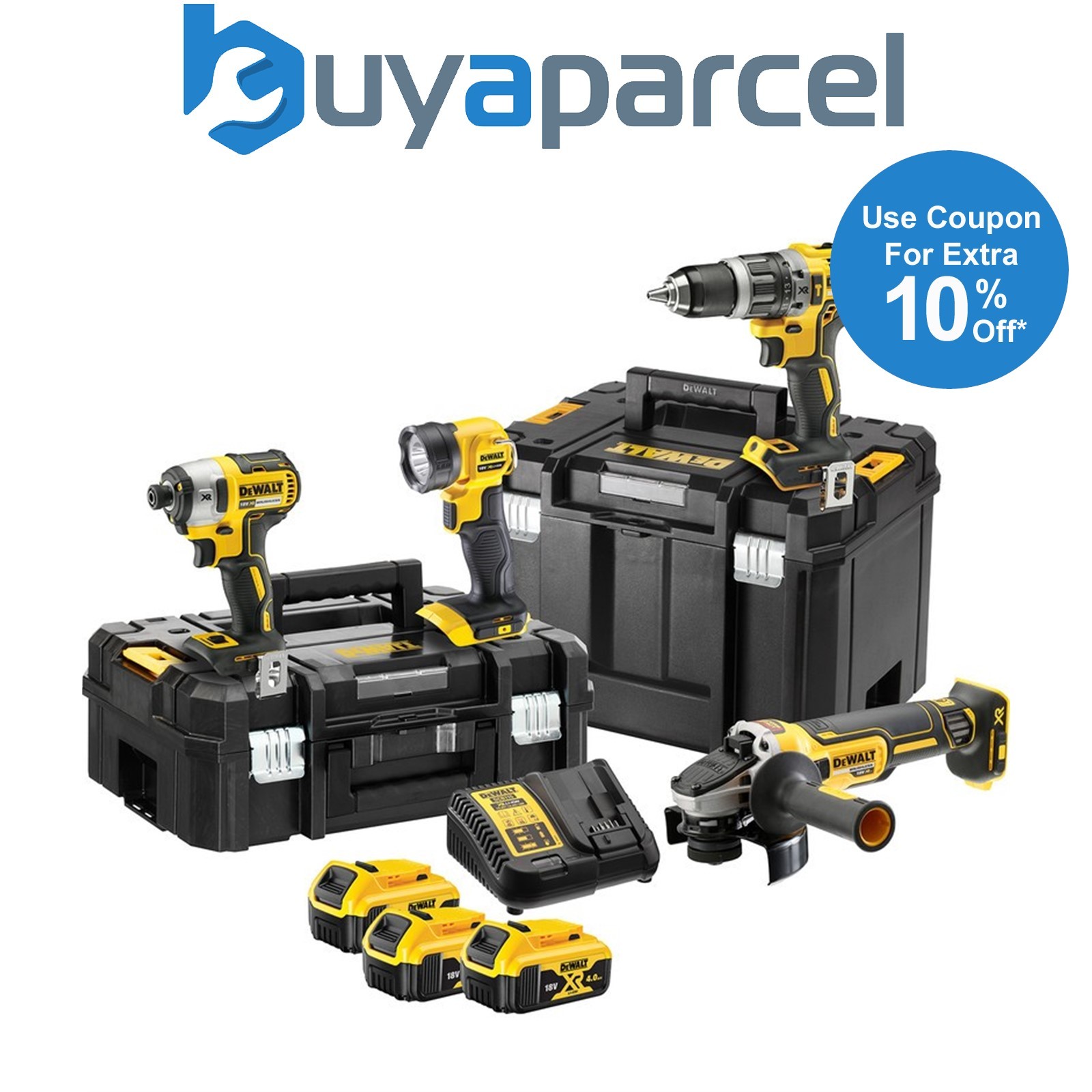 Dewalt XR Cordless 4pc 18v Brushless Combi Drill Impact Driver Grinder Torch Kit
