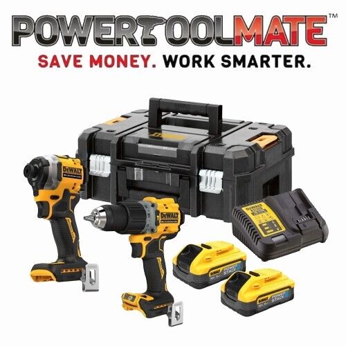 DEWALT DCK2050H2T-GB 18V XR G3 2 x 5.0Ah Powerstack Compact Brushless Combi Drill & Impact Driver Twin Kit