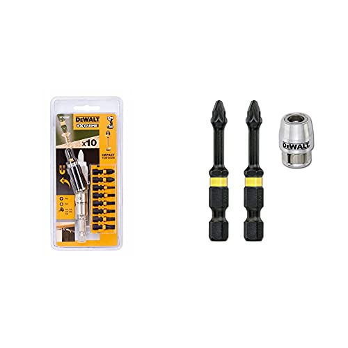 Dewalt Extreme Impact Torsion Bit Set with abknickbarem Bit Holder, Set of 10, DT70578T & DeWalt DEWDT70535T Impact Torsion 2 x PZ2 57mm and Magnetic Screwlock Sleeve,3 Count (Pack of 1)