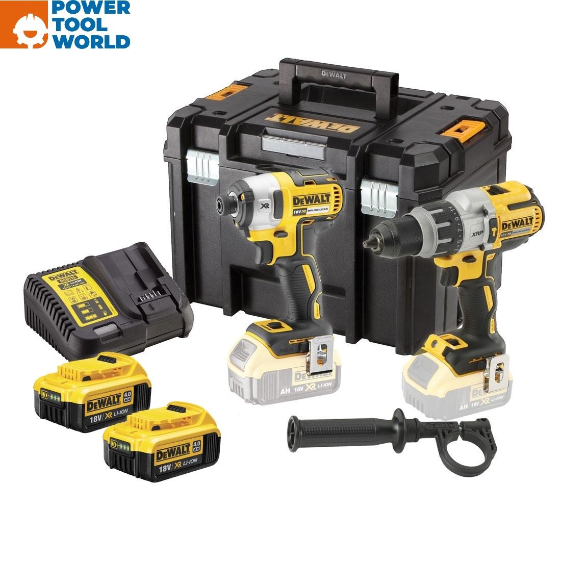 DeWalt 18V Brushless Combi Drill Impact Driver Twin Kit 2 x 4Ah Battery Charger