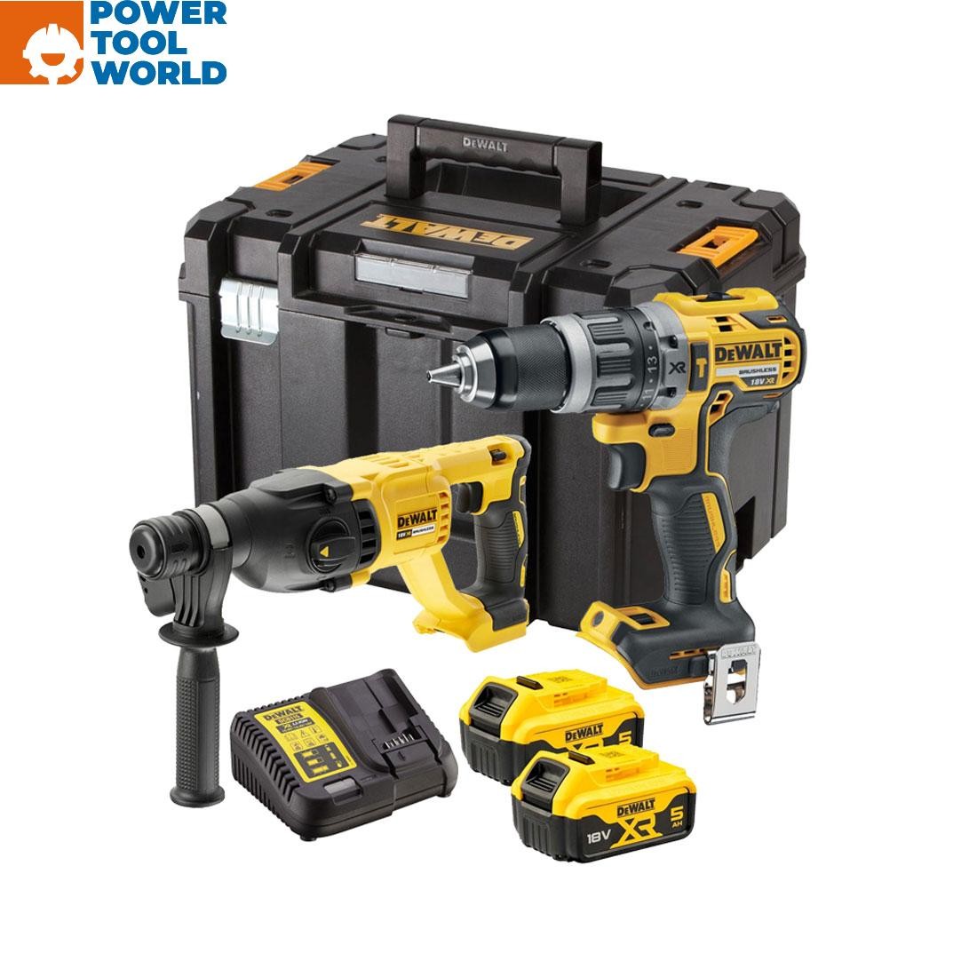 Dewalt DCK2071P2T 18V Brushless SDS + Combi Drill Twin Kit 2 x 5.0Ah Batteries
