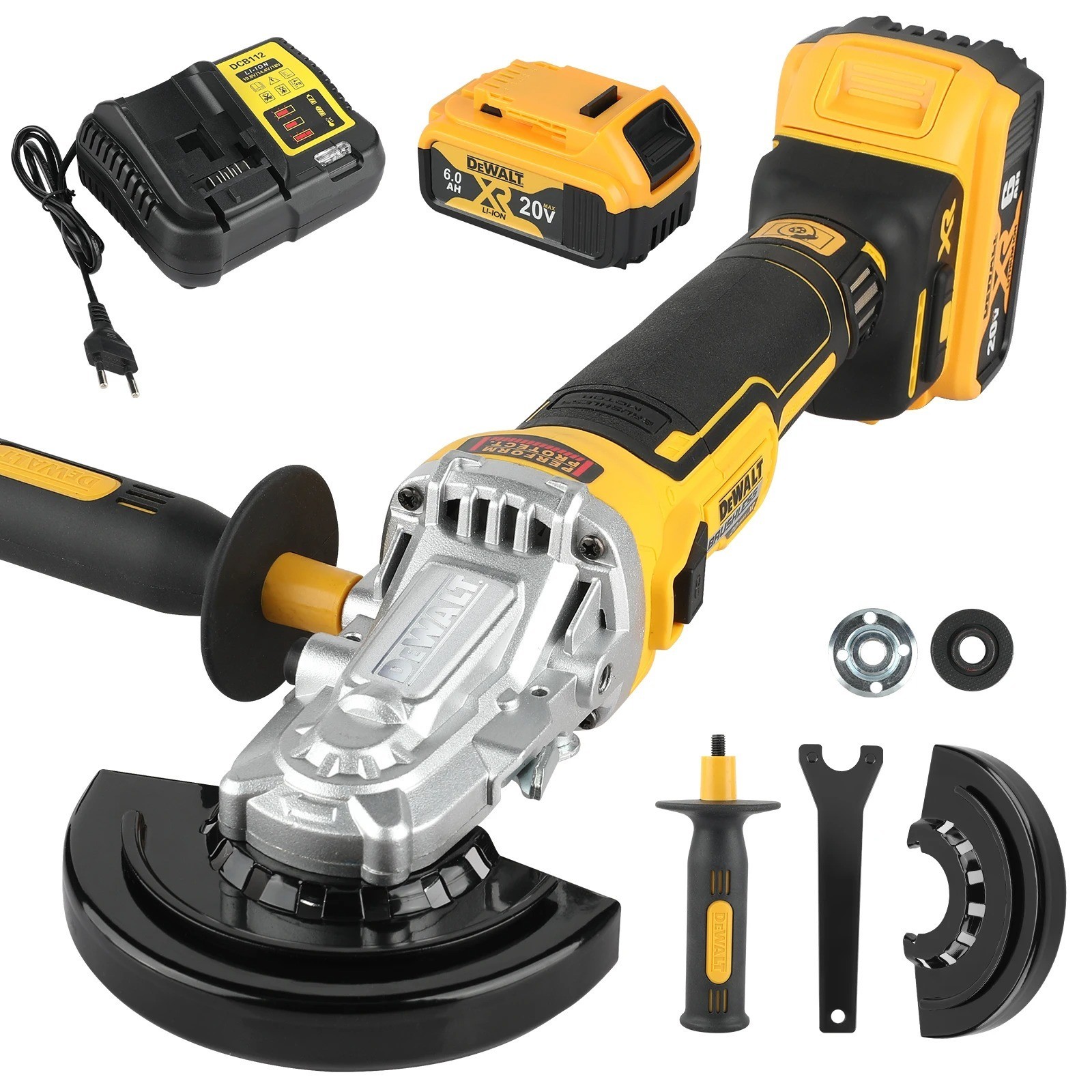 For DeWalt 18V 20V Battery Cordless Brushless Angle Grinder 125mm Angle Grinder Power Tools for Metal,Stone,Wood Cutting