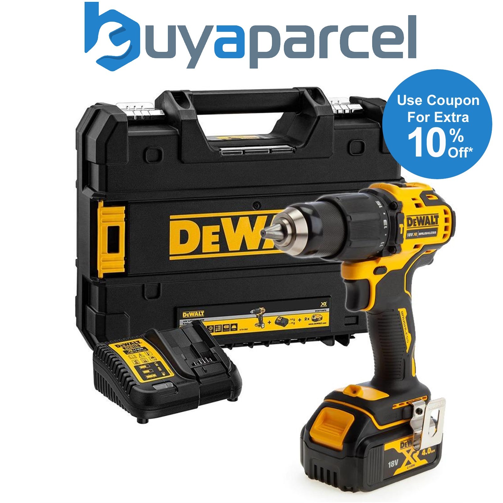 DeWalt DCD709 18V XR Brushless Combi Drill Kit 2x 4.0Ah Batteries Charger