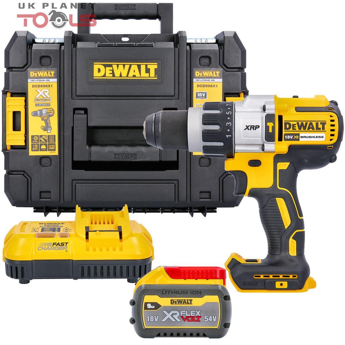 DeWalt DCD996X1-GB 18V XR Brushless Premium Hammer Drill Driver - 1 X 9Ah Batter