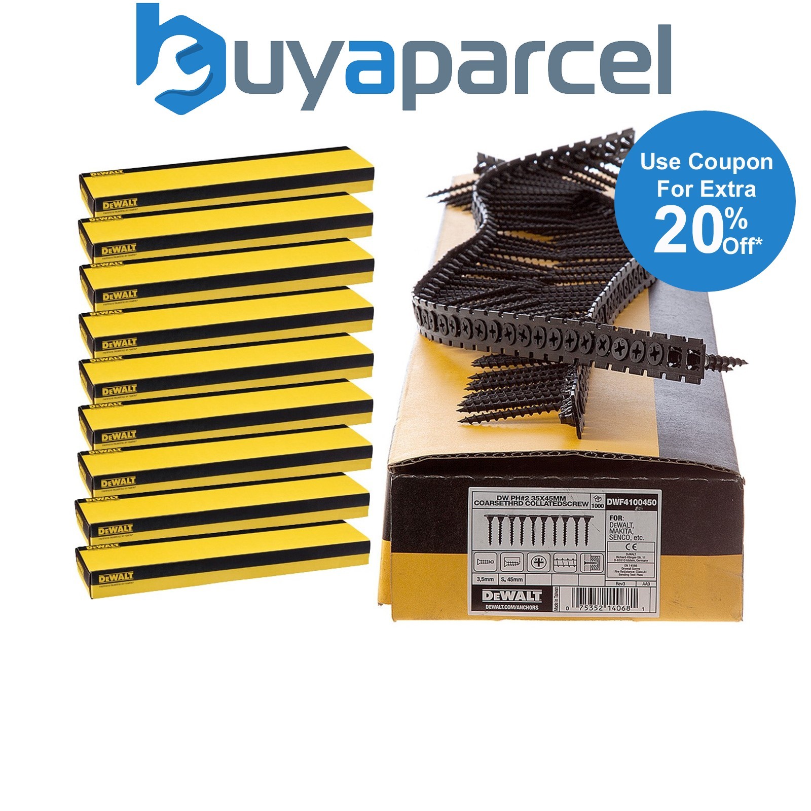 Dewalt 35mm x 3.5mm Coarse Thread Collated Screws X 10,000 Fits DCF620 Makita Fe