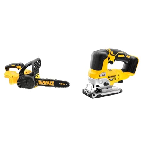 DEWALT DCM565N-XJ 18V XR Brushless 30cm Chainsaw & DCS334N-XJ Cordless Jigsaw - XR 18V Brushless Yellow - Bare Unit