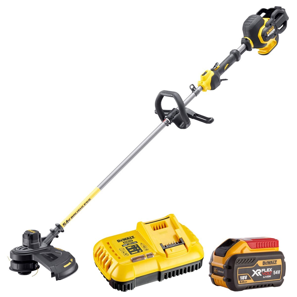 DeWalt DCM571 54v XR Cordless Brushless FLEXVOLT Brush Cutter and Grass Trimmer 1 x 9ah Li-ion Battery Charger No Case
