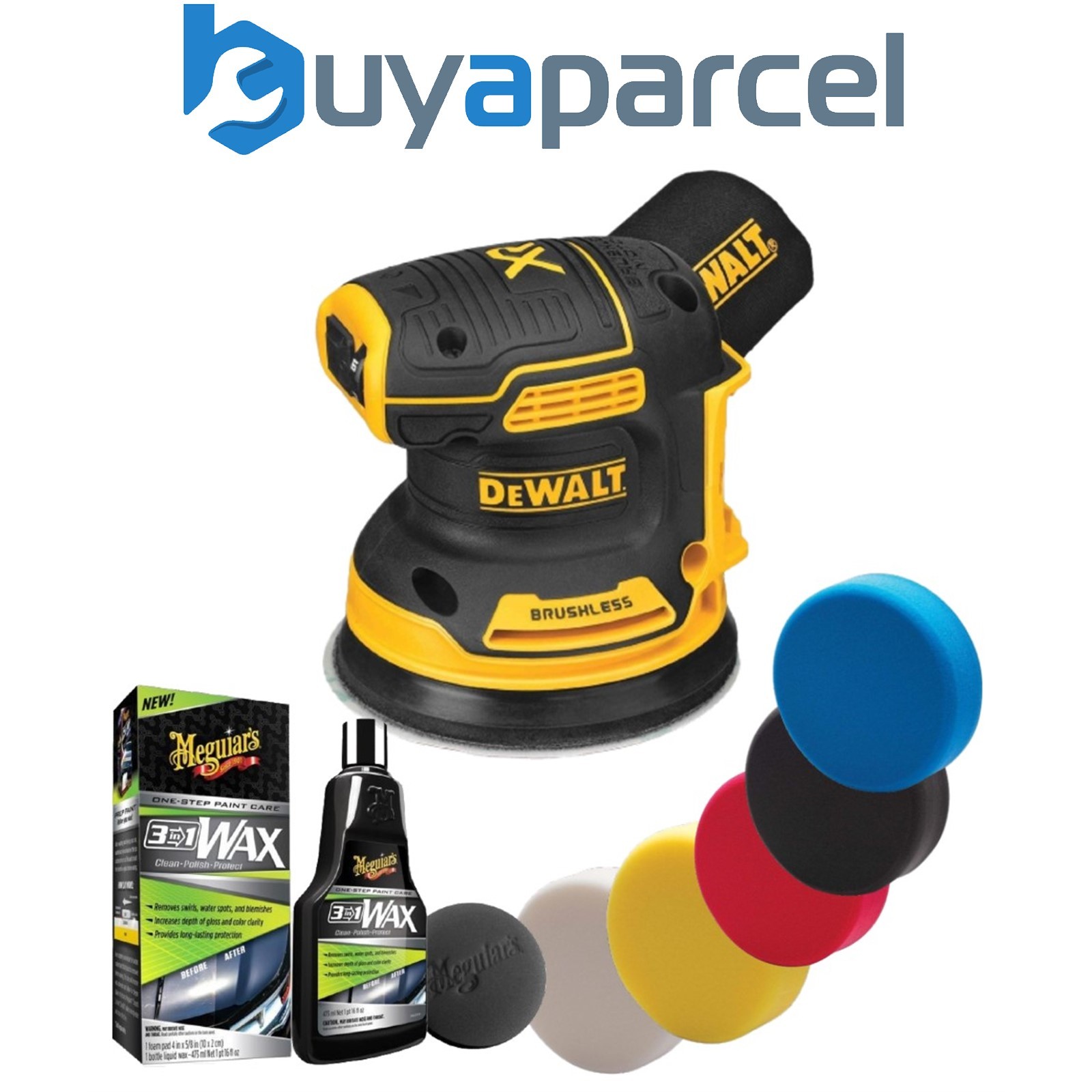 Dewalt DCW210N Cordless Brushless 18v XR Orbital Sander 125mm Meguiars & Pads x5