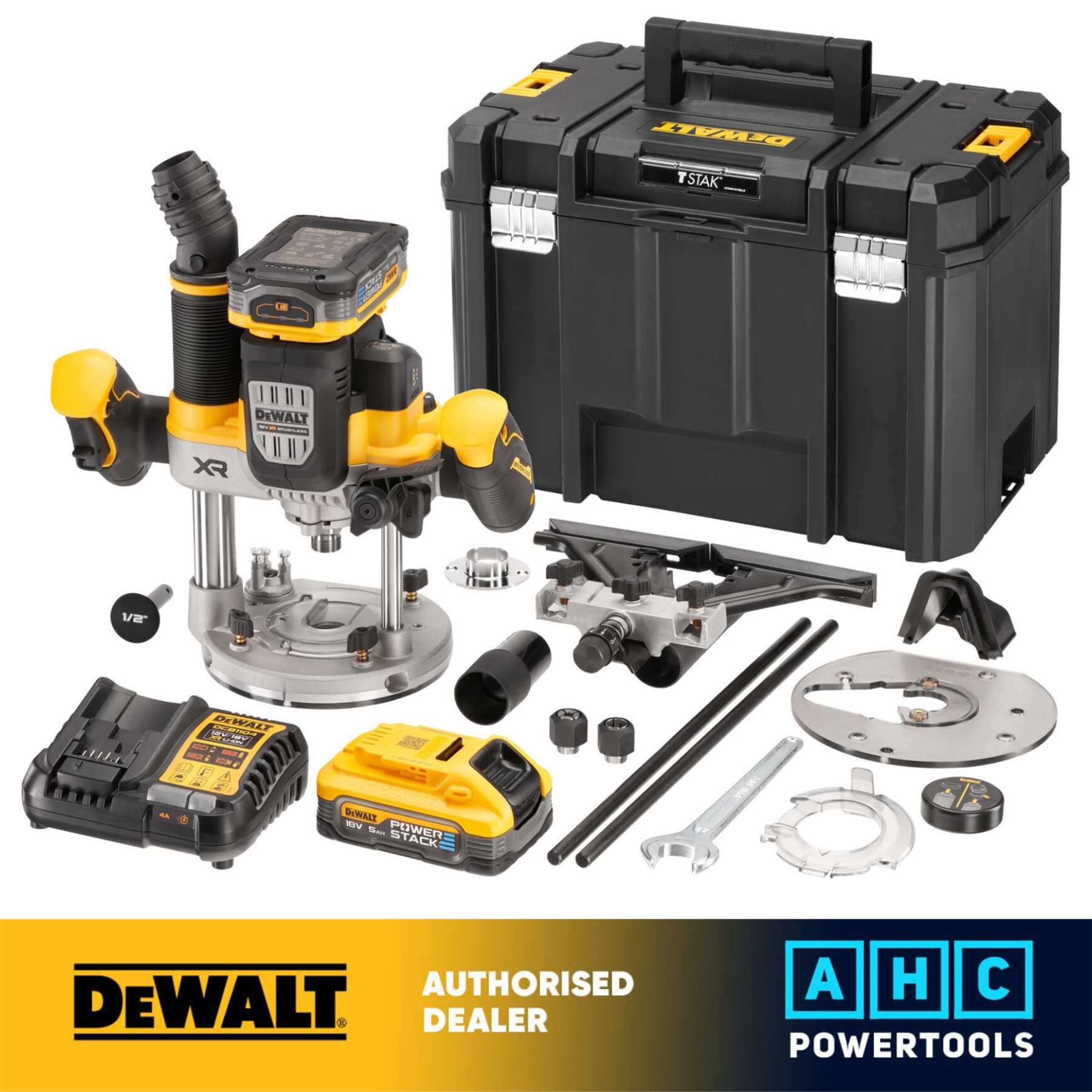 DeWalt DCW620 18v XR Cordless Brushless Plunge Router 1/2" 2 x 5ah Li-ion Powerstack Battery Charger Case