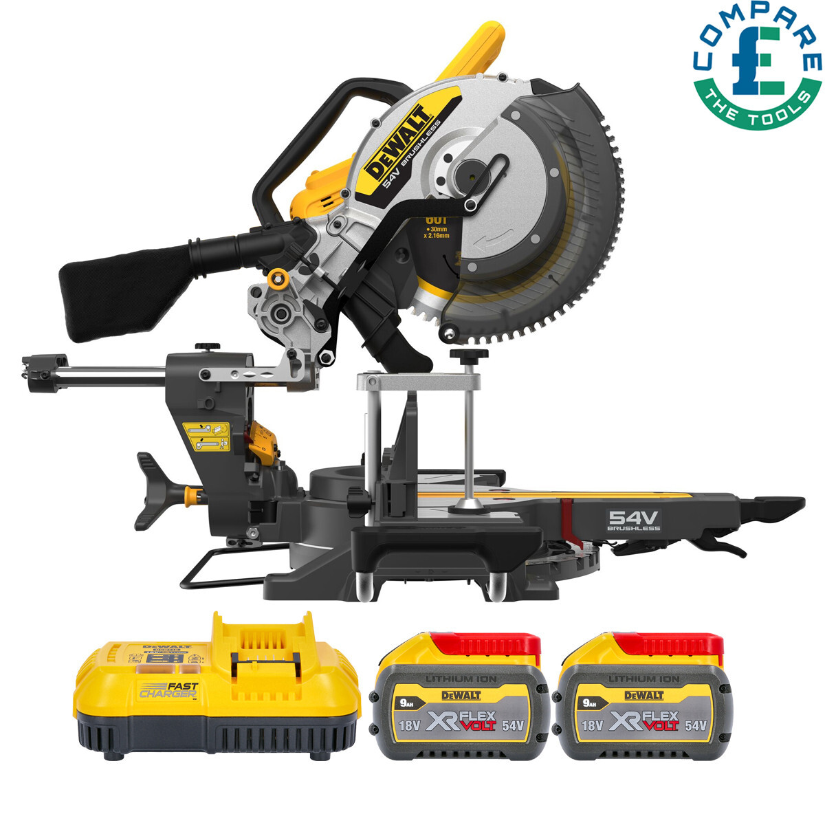 DeWalt DCS781X2 54V XR FLEXVOLT Brushless Mitre Saw 305mm + 2 x 9Ah Batteries