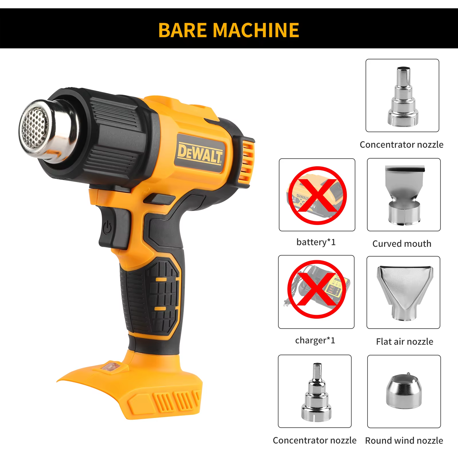 Cordless Heat Gun for Dewalt 18V 20V Battery (No Battery), Cordless Hot Air Gun with 4 Nozzles, Battery Heat Gun for Welding, Bending Pipes, Colour