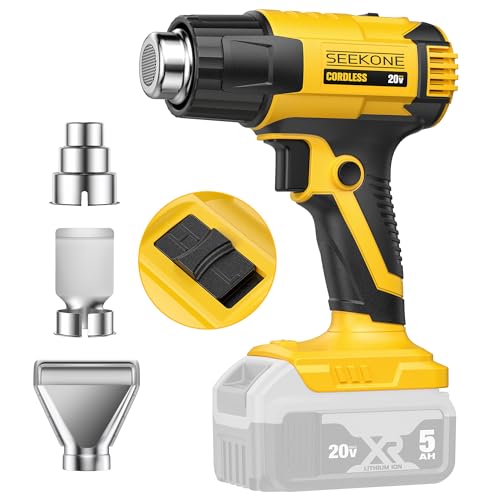 SEEKONE Cordless Heat Gun for Dewalt 20V Battery, Dual Temperature Settings 300°C and 550°C Fast Heating Hot Air Gun with 3 Nozzles for Shrink Tubing, Vinyl Wrap, Crafting, Electronics (No Battery)