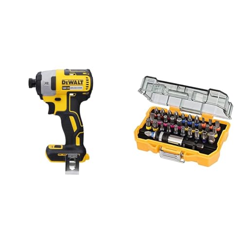 DEWALT DCF887N XR 18V 3 Speed BL Impact Driver Naked-Body ONLY, 18 W, 18 V, Multi, Bare Unit & DT7969-QZ, 32 Piece XR Professional Magnetic Screwdriver Bit Accessory Set, Yellow