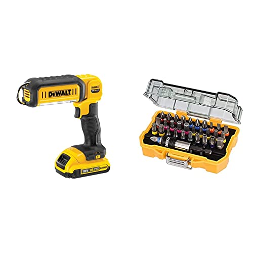 DEWALT DCL050-XJ 18 V XR Handheld LED Area Light, Bare Unit, Multi & DT7969-QZ, 32 Piece XR Professional Magnetic Screwdriver Bit Accessory Set, Yellow