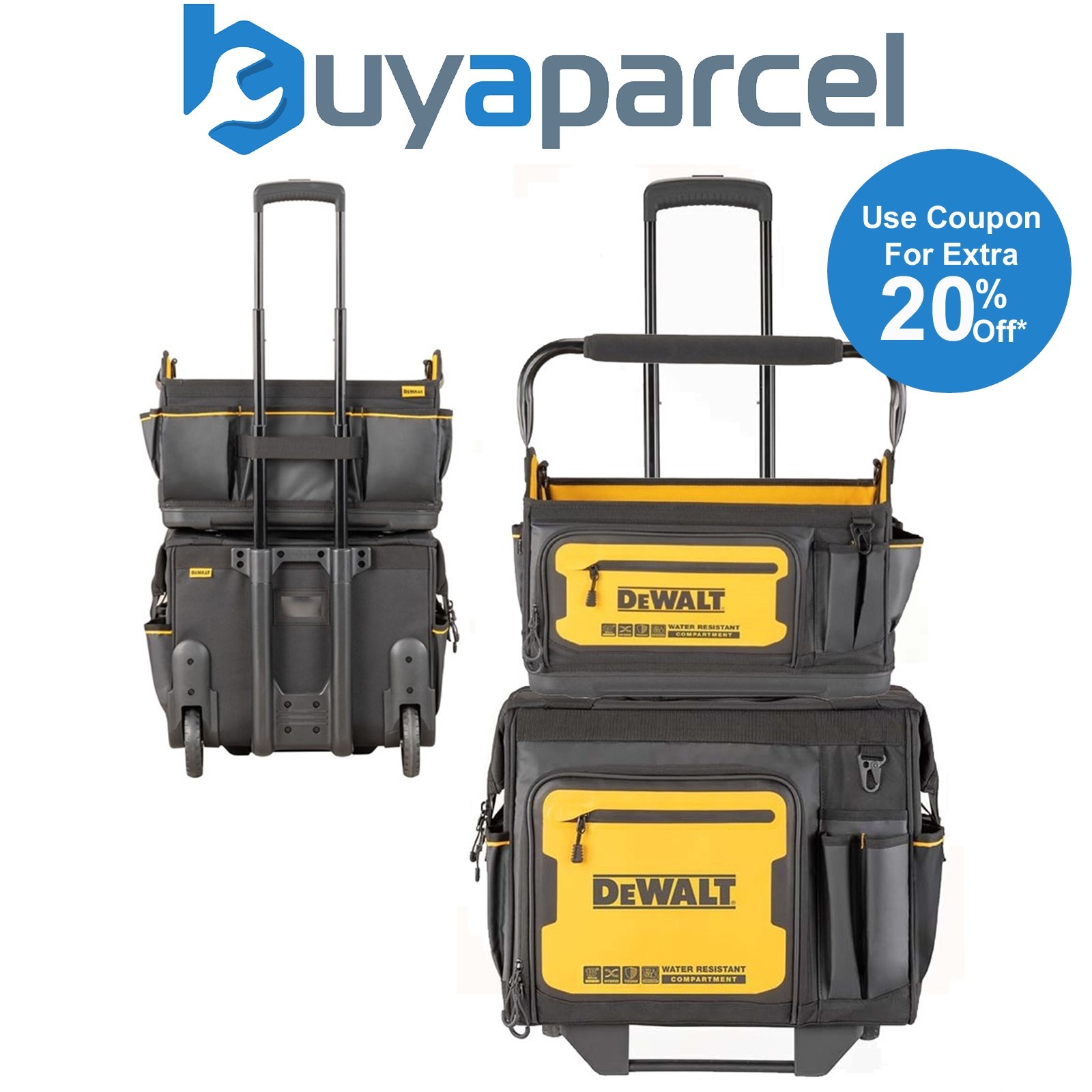 Dewalt Pro Rolling Wheeled Tool Bag Case Soft Storage Stackable + Tote Bag IP54
