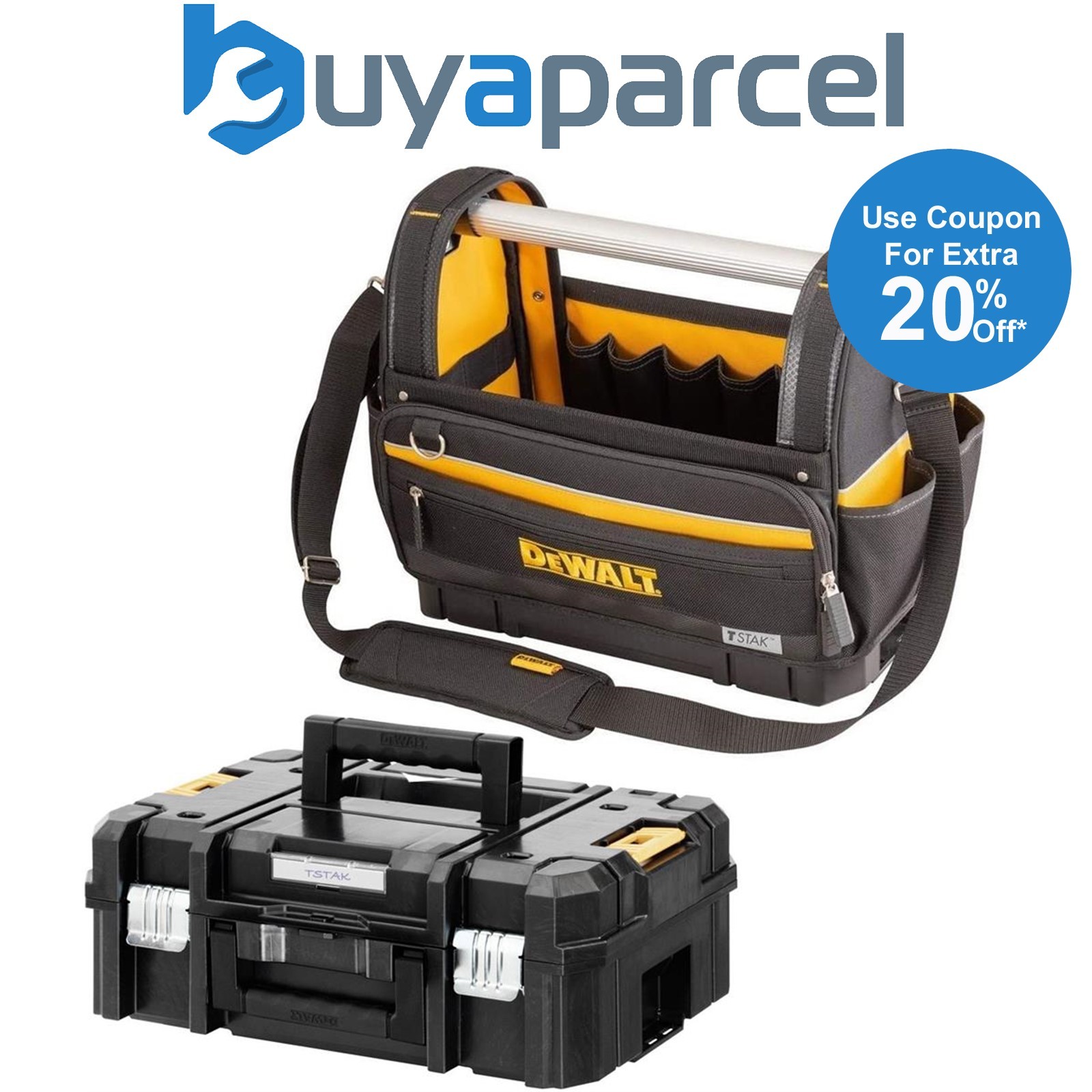 Dewalt Tstak Bottom Large Pro Open Mouth Tote Bag 18" Toolbag + Tstak 2 Case