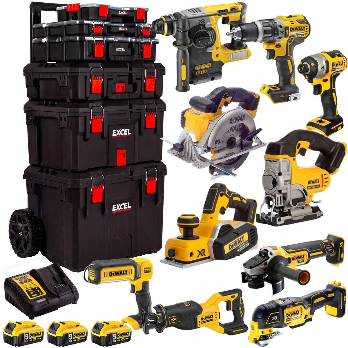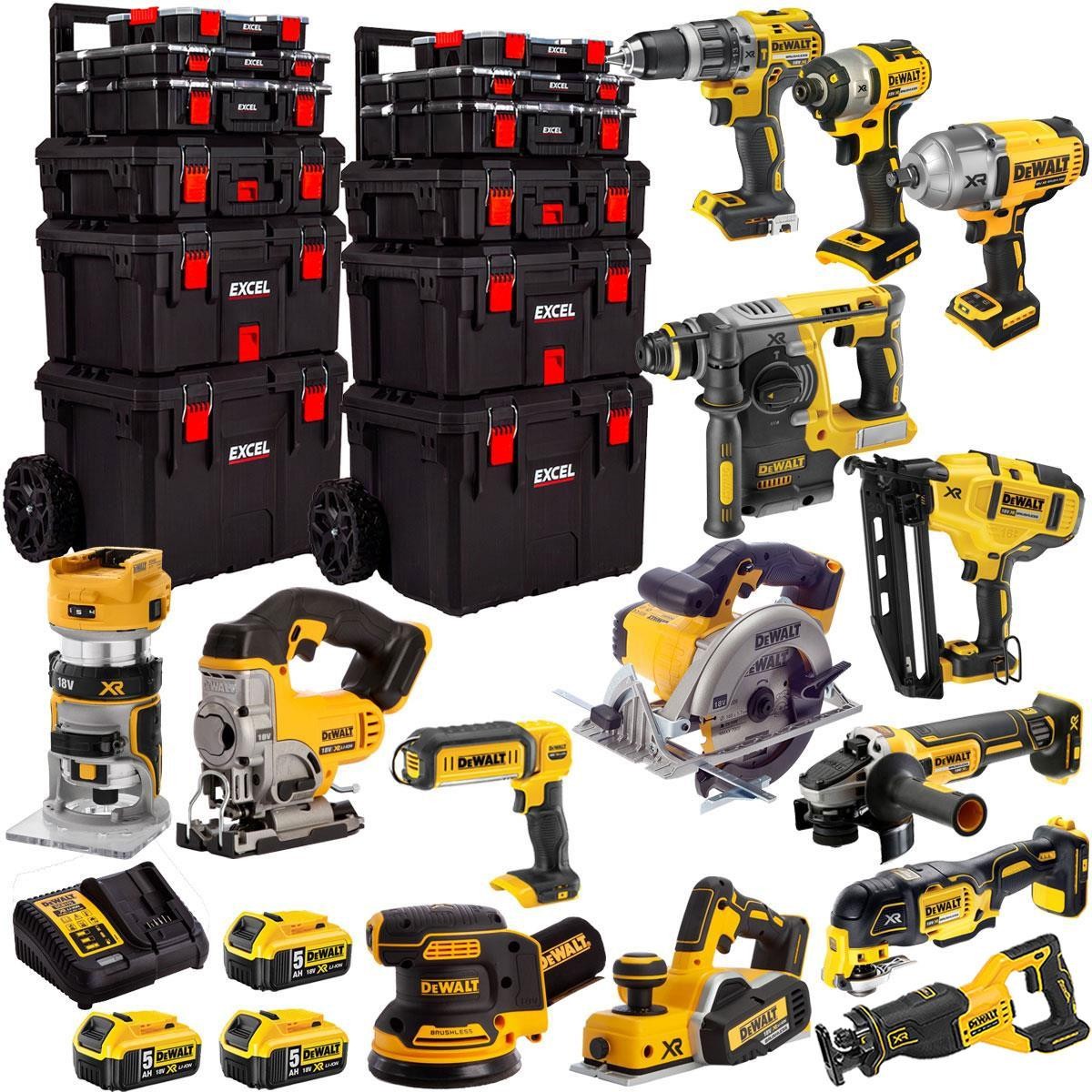 Dewalt 18V XR 14 Piece Power Tool Kit 3 x 5Ah Battery Charger & Trolley Toolbox
