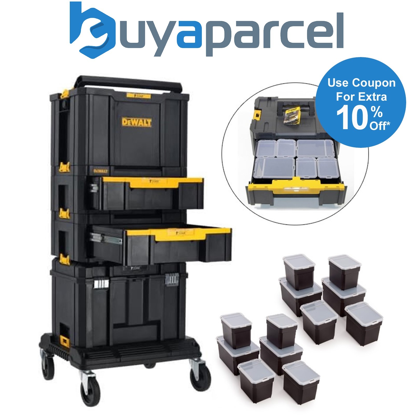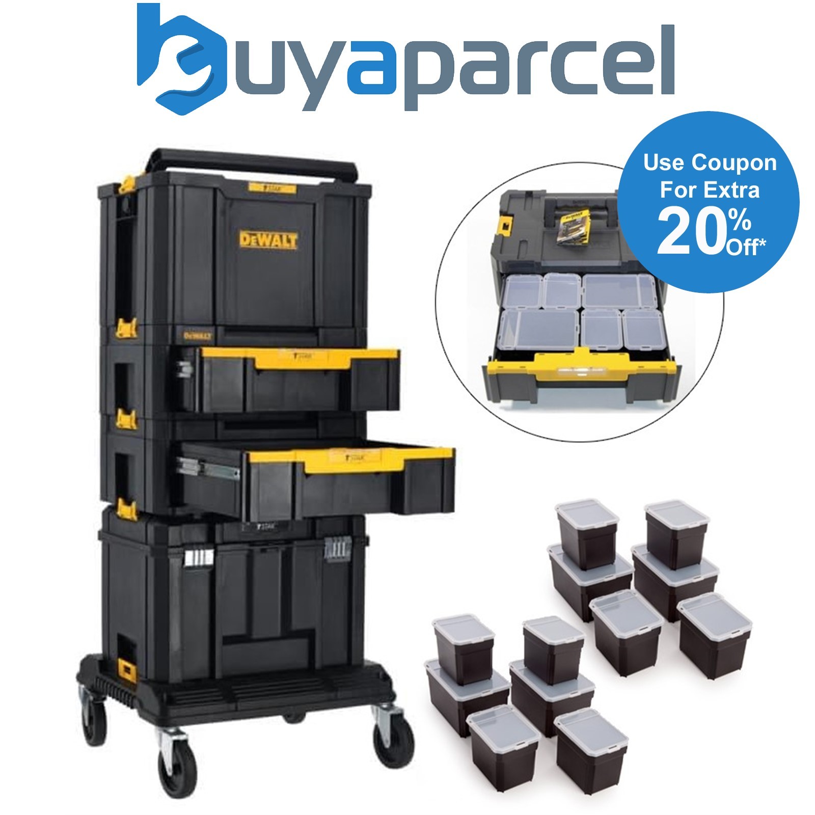 Dewalt 5 Piece Tstak Tower 2 Drawer Units Deep Case + Tote Wheeled Cart Trolley