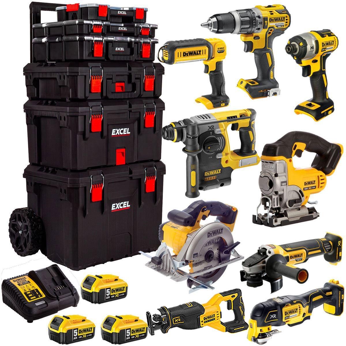 DeWalt DCKT4T9AP4T 18V 9 Piece Power Tool Kit 3 x 5Ah Battery & Trolley Toolbox