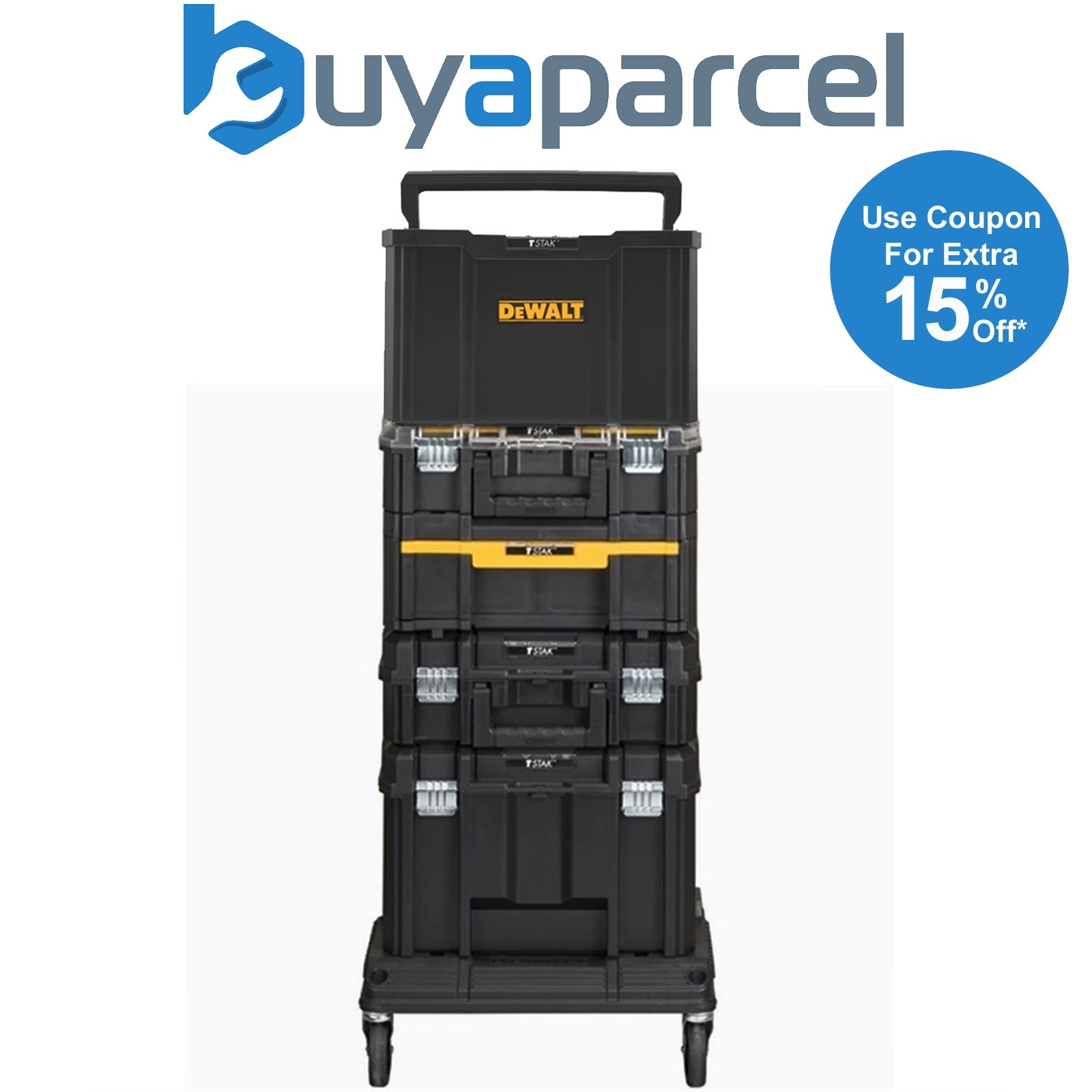 Dewalt 5 Piece Tstak Tower - Includes 5 Cases with Tote + Wheeled Cart Trolley