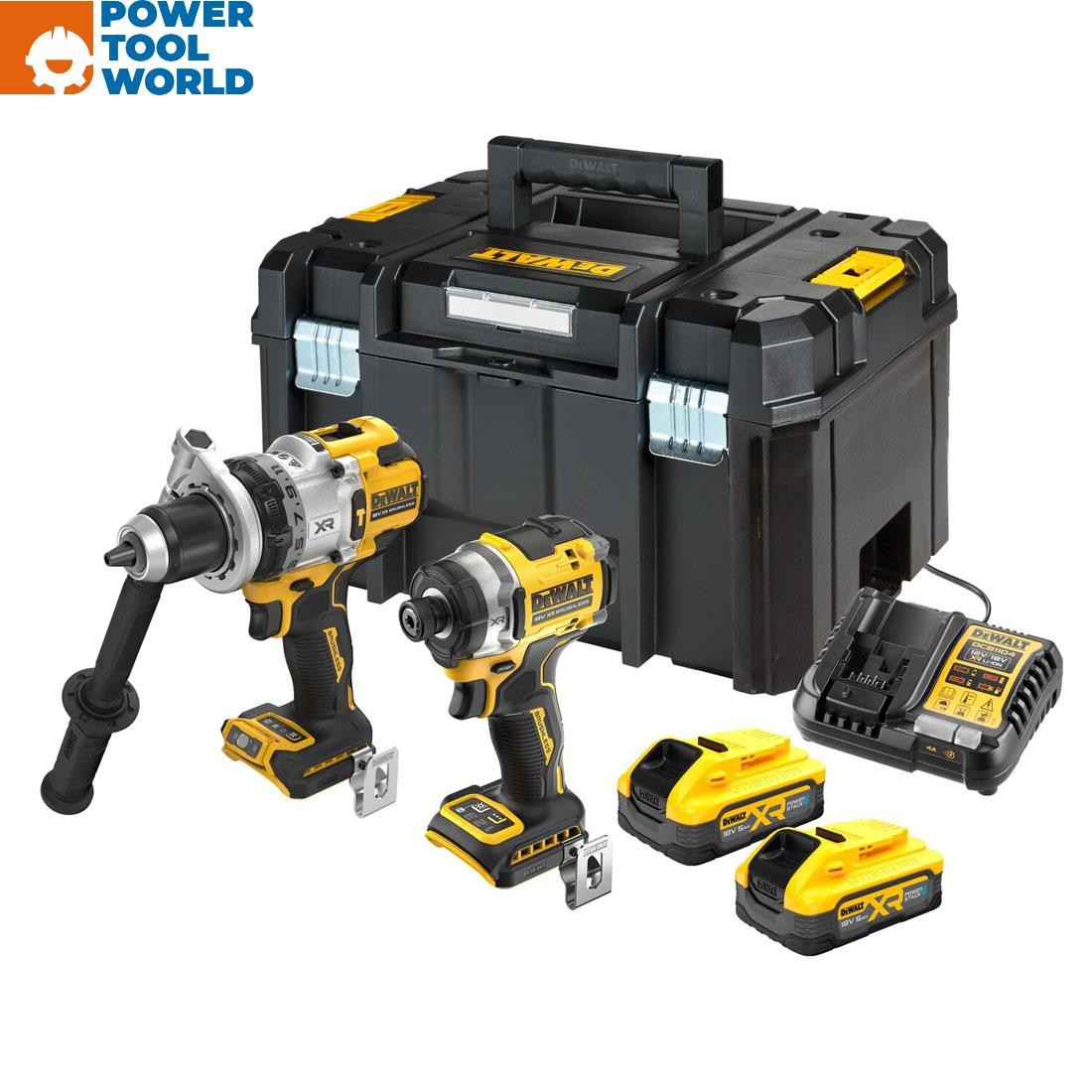 DEWALT DCK2050H2T-GB 18V XR G3 2 x 5.0Ah Powerstack Compact Brushless Combi Drill & Impact Driver Twin Kit