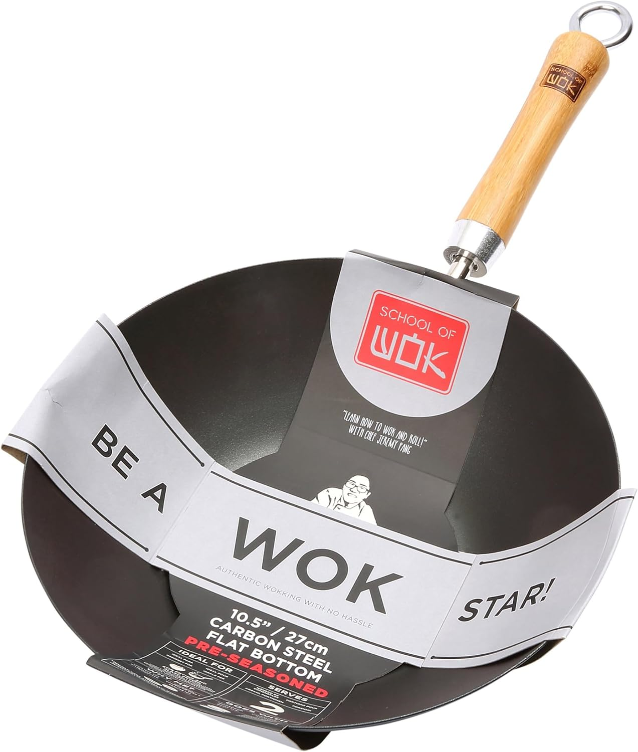 School of Wok 10.5"/27Cm Pre-Seasoned Carbon Steel Wok