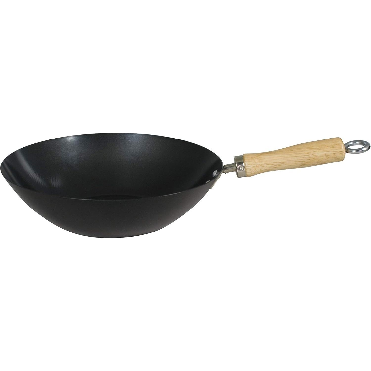 Dexam 12108412 Non-Stick Steel Wok with Wood handle-12 (30cm), Carbon