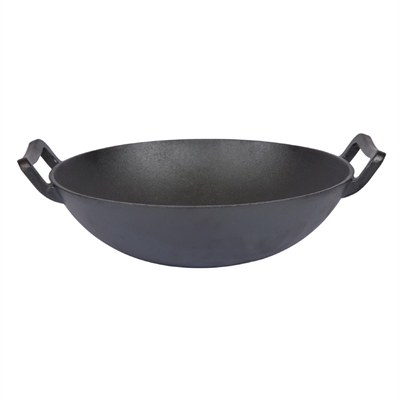 Dexam School of Wok Pre-Seasoned Cast Iron Flat Base Wok 300mm