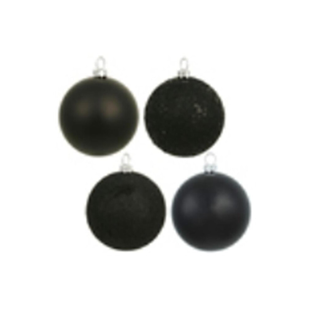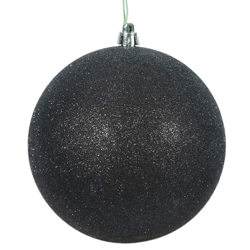 Vickerman N591517DG Glitter Ball Ornaments with Shatterproof UV Resistant Pre-drilled Cap Secured & Green Floral Wire in 4 per Bag 6"""" Black