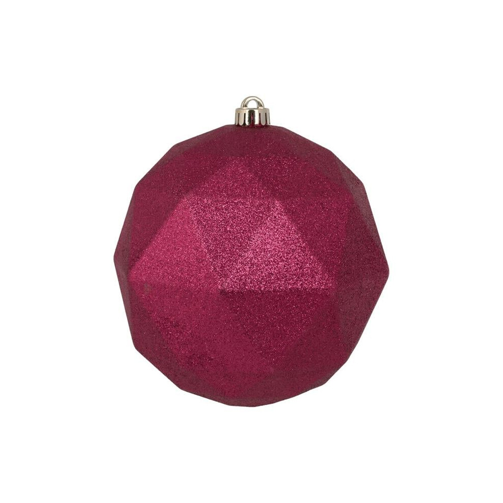 Vickerman M177521DG 8 in. Glitter Geometric Ball Ornament, Berry Red
