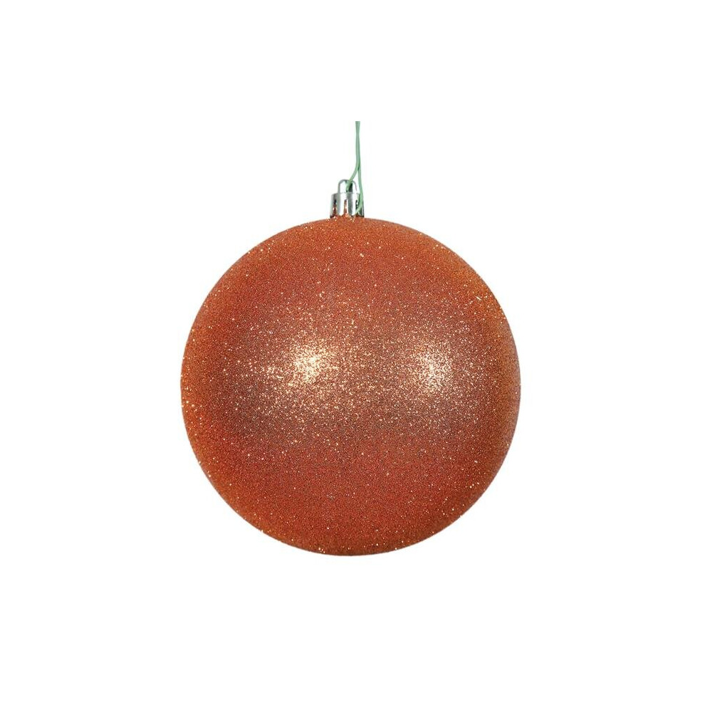 Vickerman N591018DG Burn Orange Glitter Drilled Ball Ornament, 4 in. - 6 per Bag