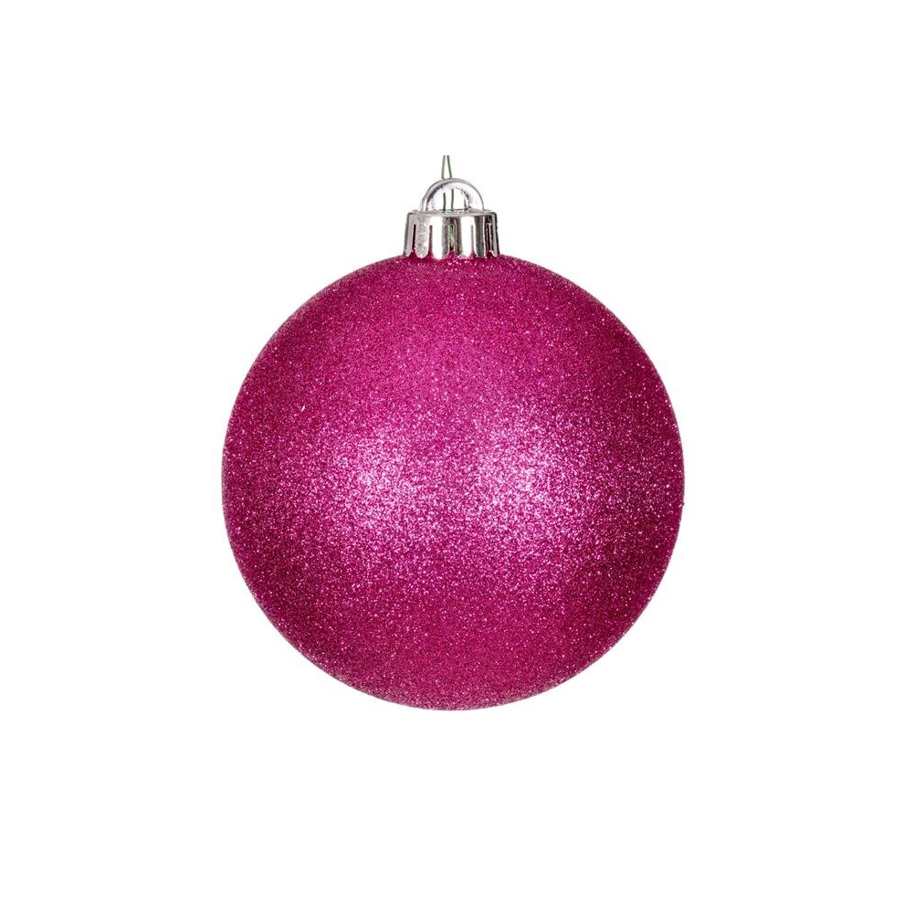 Vickerman N591059DG 4 in. Hot Pink Glitter Drilled Plastic Ball Ornaments, 6 per Bag