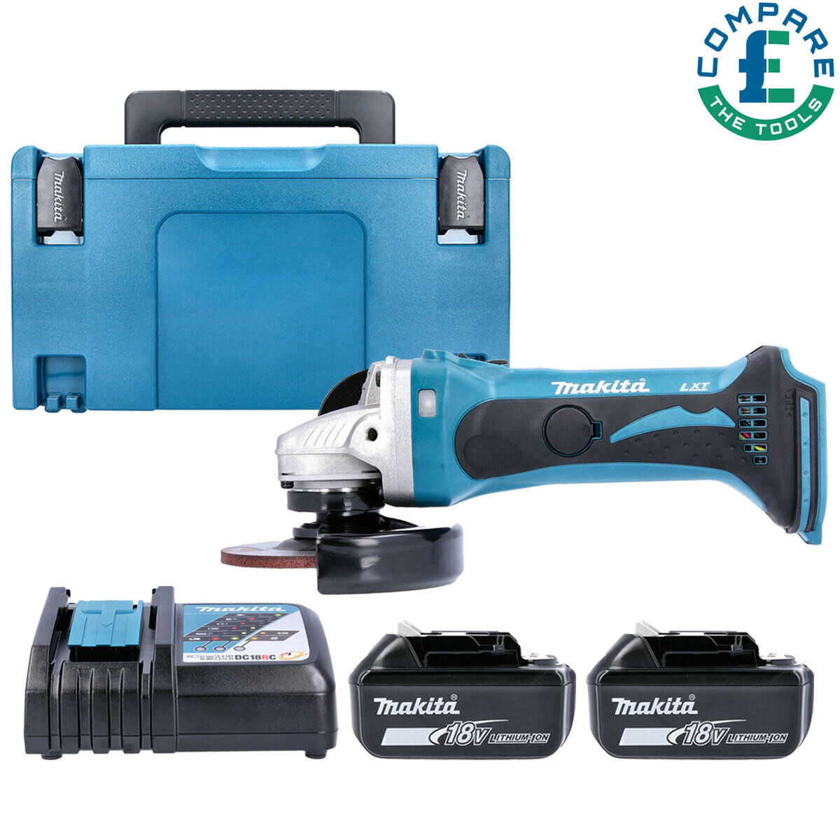 Makita DGA452 18V 115mm LXT Angle Grinder With 2 x 5Ah Batteries, Charger & Case