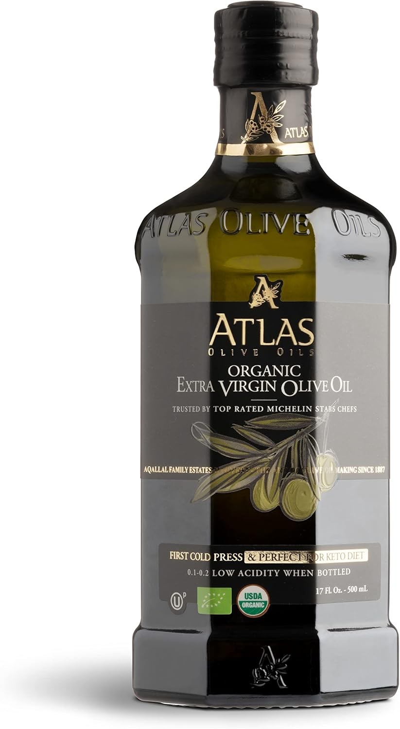 A ATLAS OLIVE OILS Organic Cold Pressed Moroccan Extra Virgin Olive Oil 17 Fl Oz