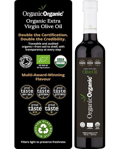 Organic Extra Virgin Olive Oil 500ml, Cold Pressed Greek Olive Oil, High Polyphenol, Handpicked, BioPhoton Violet Glass, Double Certified UK&EU, Great Taste 2025 Double Gold – OrganicOrganic® Gourmet