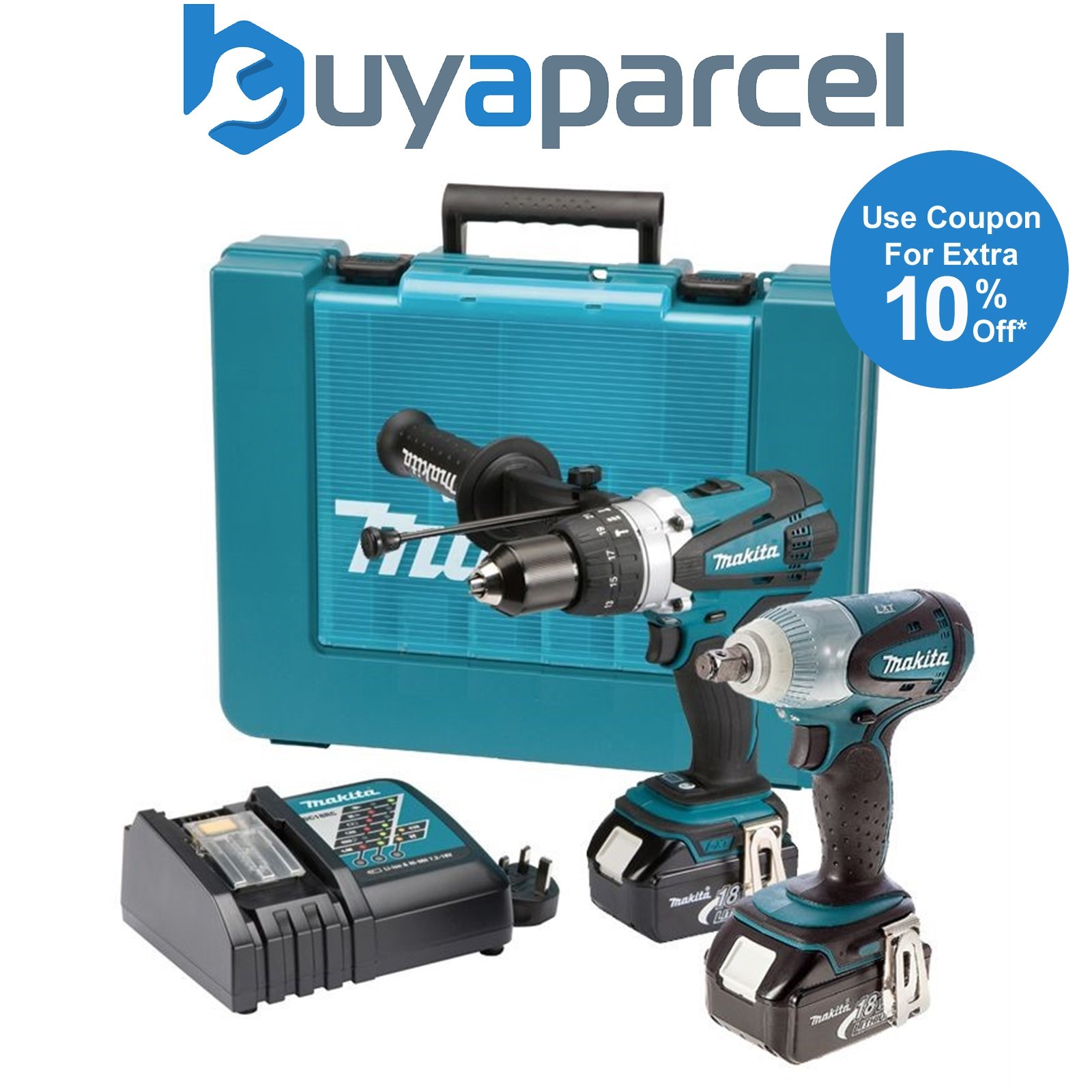Makita DHP458 18v Combi Hammer + DTW251 18v Impact Wrench + 2 x 3.0ah + Charger