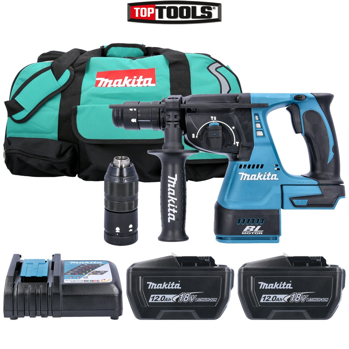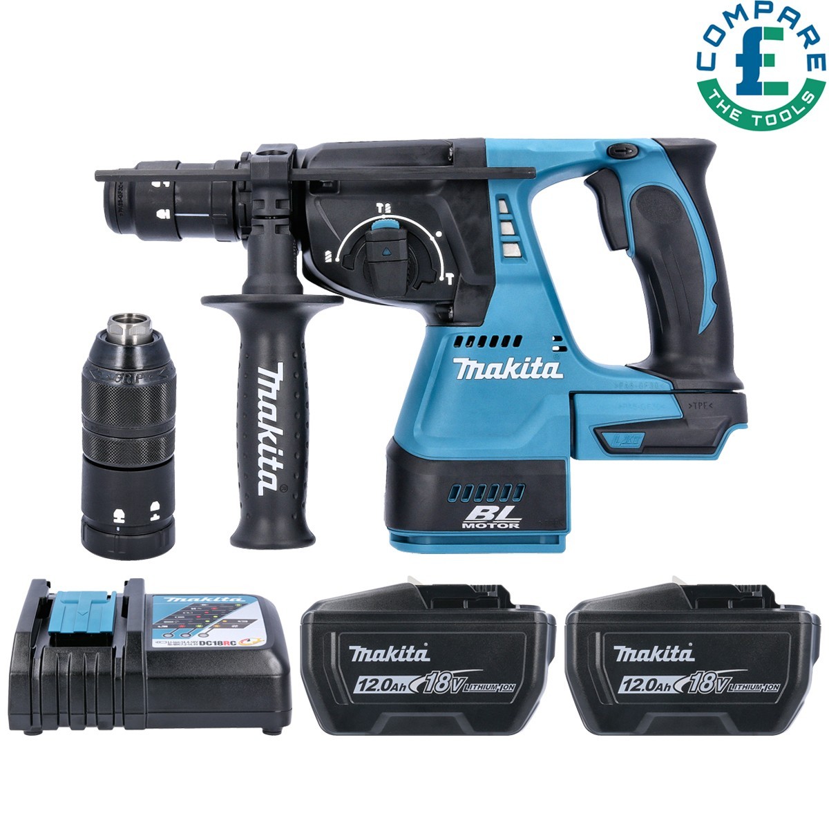Makita DHR243Z 18v SDS+ Plus Rotary Hammer Drill + 2 x 12Ah Batteries & Charger